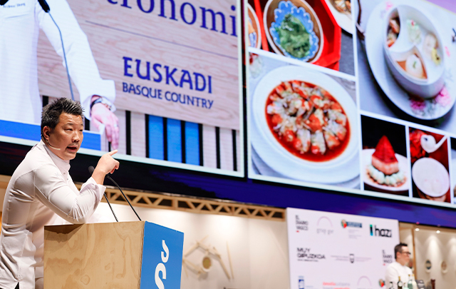 Marlene Vieira (Marlene, Lisbon) and João Sá (Sála*, Lisbon) brought the new Lisbon to the Kursaal, where different cultures mix with a flourishing gastronomy. Andoni Luis Aduriz (Mugaritz**, Errenteria) always tries to stir the minds of the congress participants with a touch of provocation, which he never lacks. Mugaritz, on the other side of the mirror. Lo que no se ve" (Mugaritz, on the other side of the mirror. What you don't see) is a journey into the world that is the inverse reflection of reality.